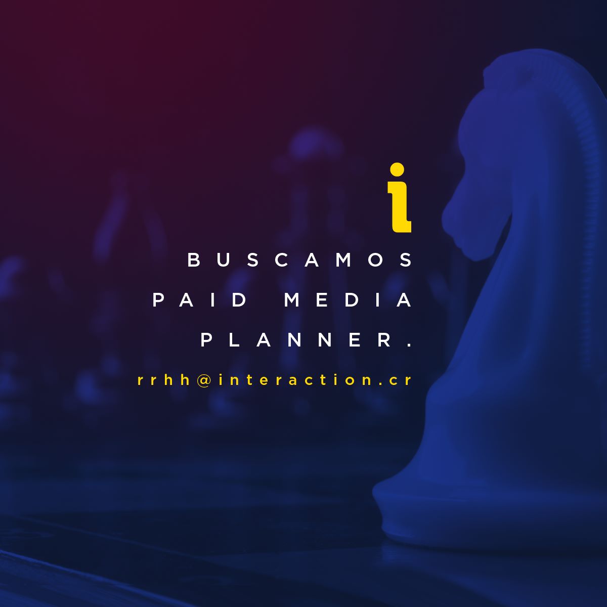 Con experiencia en colocación de medios digitales en redes sociales, motores de búsqueda y programática. Envíanos tu CV a rrhh@interaction.cr